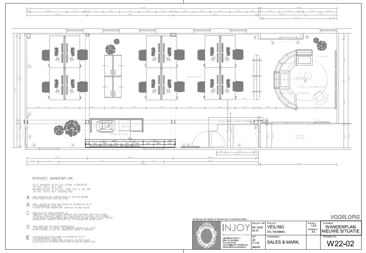 Renovatie van het Sales en Marketing kantoor binnen het Veiling gebouw. De digitale klok van het fruit is hier te zien op het geprojecteerde scherm met beamer, waardoor de medewerkers hiernaar kunnen handelen.